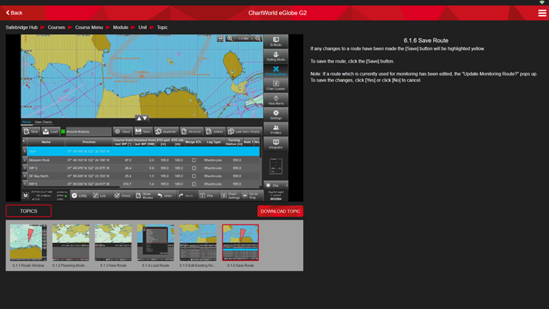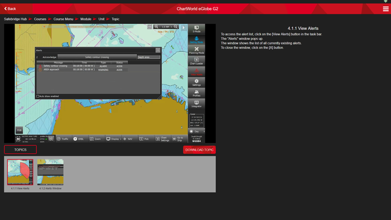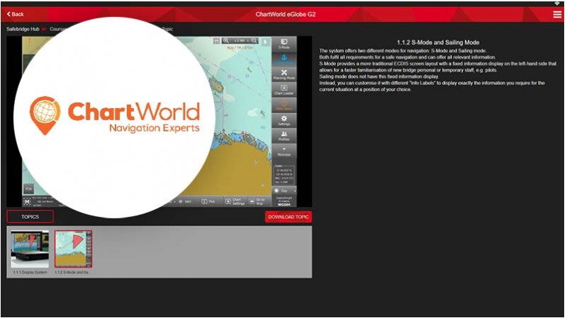 The ChartWorld eGlobe G2 type-specific training course provides officers with the system knowledge required to use this ECDIS for watchkeeping in accordance with the regulations of STCW and the ISM Code. ChartWorld is a value-added reseller of digital electronic charts for marine applications and has been delivering digital data since 2002.